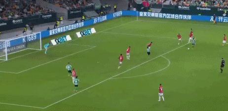 第34分鐘,安東尼再秀左腳技術(shù)。貝萊林傳球,安東尼大禁區(qū)線上左腳兜射,打出精彩世界波!